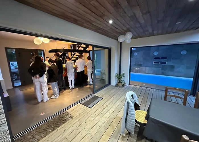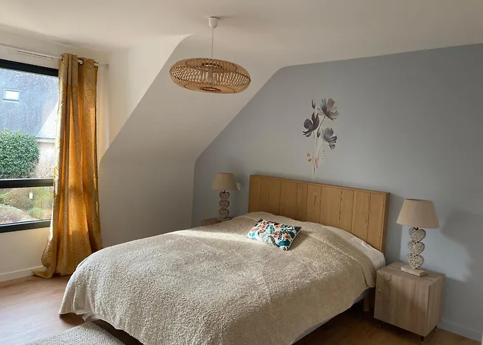 Vous pourrez accéder à la pointe du Berchis à environ 10 minutes en voiture et à la Plage des 7 Îles, qui est à 15 minutes en voiture. L'aéroport de Saint-Nazaire-Montoir est à 95 km de Villa Kerdelan, et l'arrêt de bus 4 Chemins est à seulement 400 mètres.
